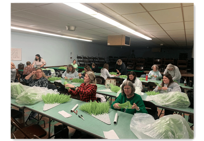 - Material: zip ties, plastic wreathing board, UV protectant, deco mesh, jingle bells, velvet wired ribbon