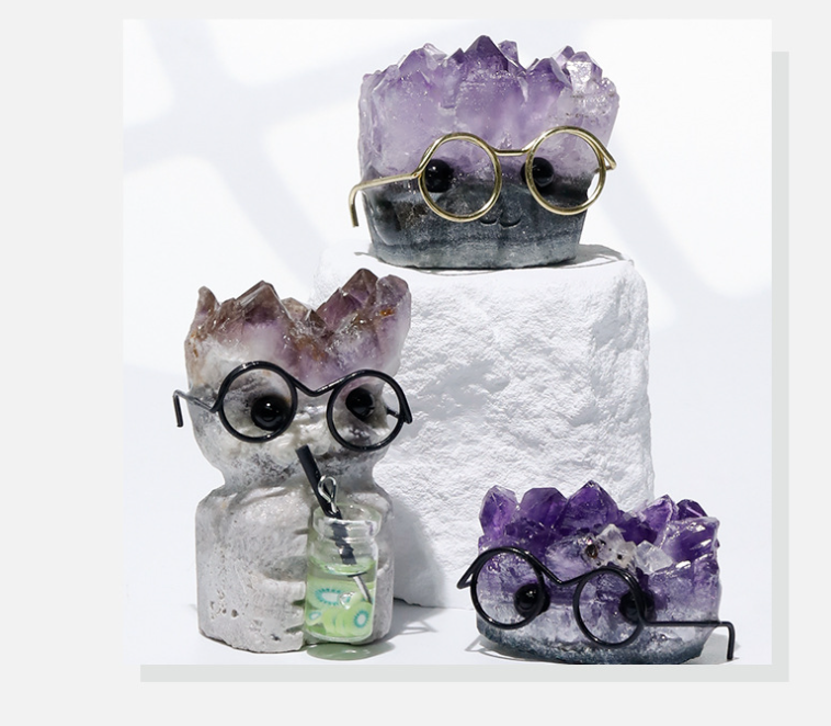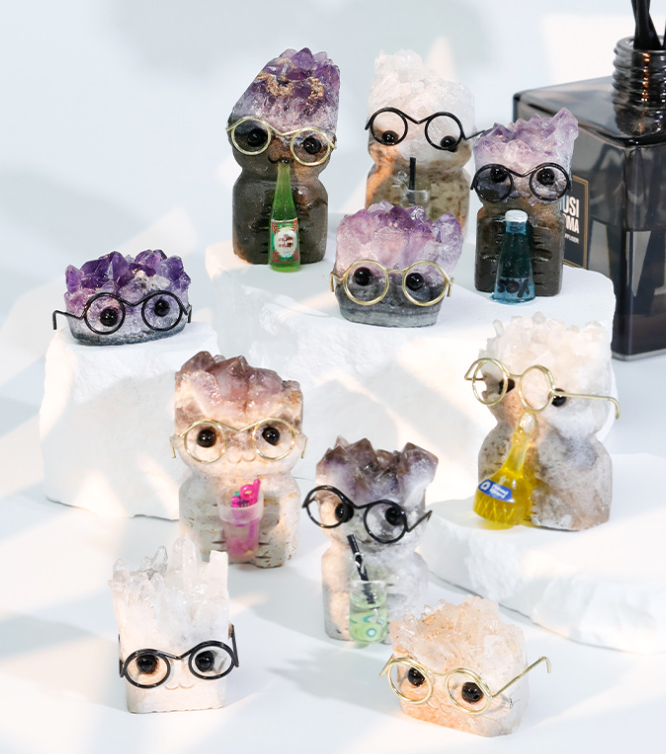 Unique Appearance: A natural quartz crystal with unique punk - rock - inspired "hair" and adorable faces, adding a distinctive charm to your home.