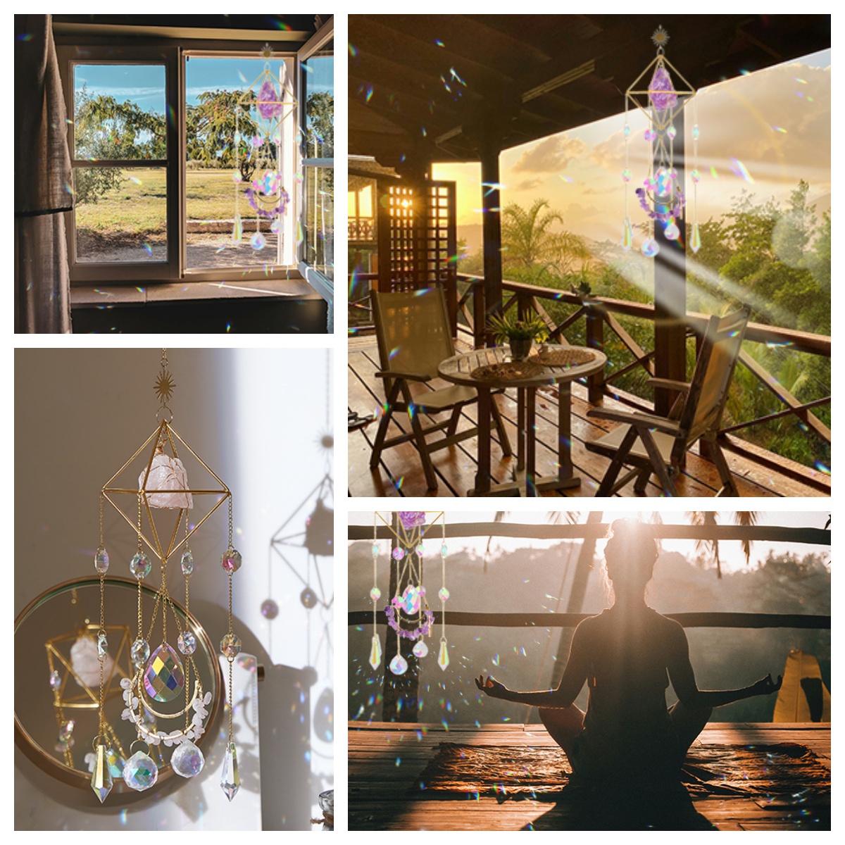 Beautiful Rainbow Effect: When the sunlight hits the crystal wind chime, it creates an amazing effect, filling the room with rainbow-colored light, illuminating your life.