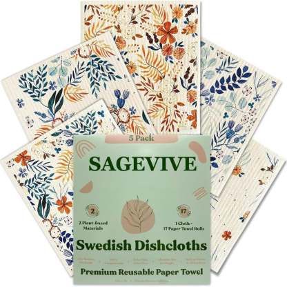 Each cloth lasts 50+ washes, replacing up to 17 rolls of paper towels. That’s 85 rolls saved in just one 5-pack!
