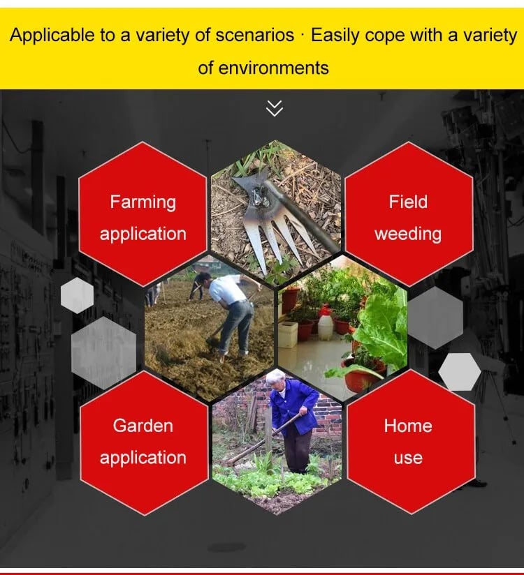 New four-tooth multi-functional weed scarifier. The tooth tips are sharp and break through the ground easily.